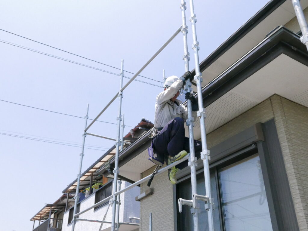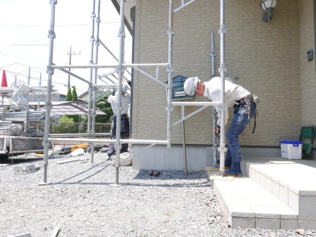 塗装前の洗浄をするにも、塗装をするにも、足場が無ければ始まりません。