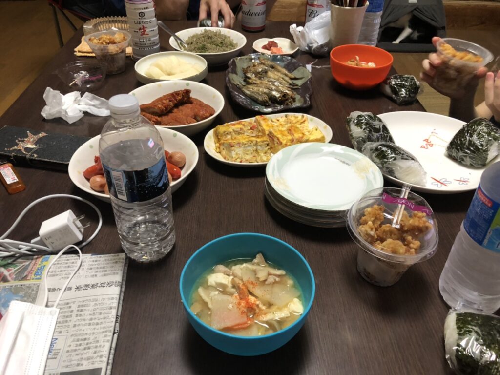 この写真は奥さんの実家でご飯を食べている様子です!