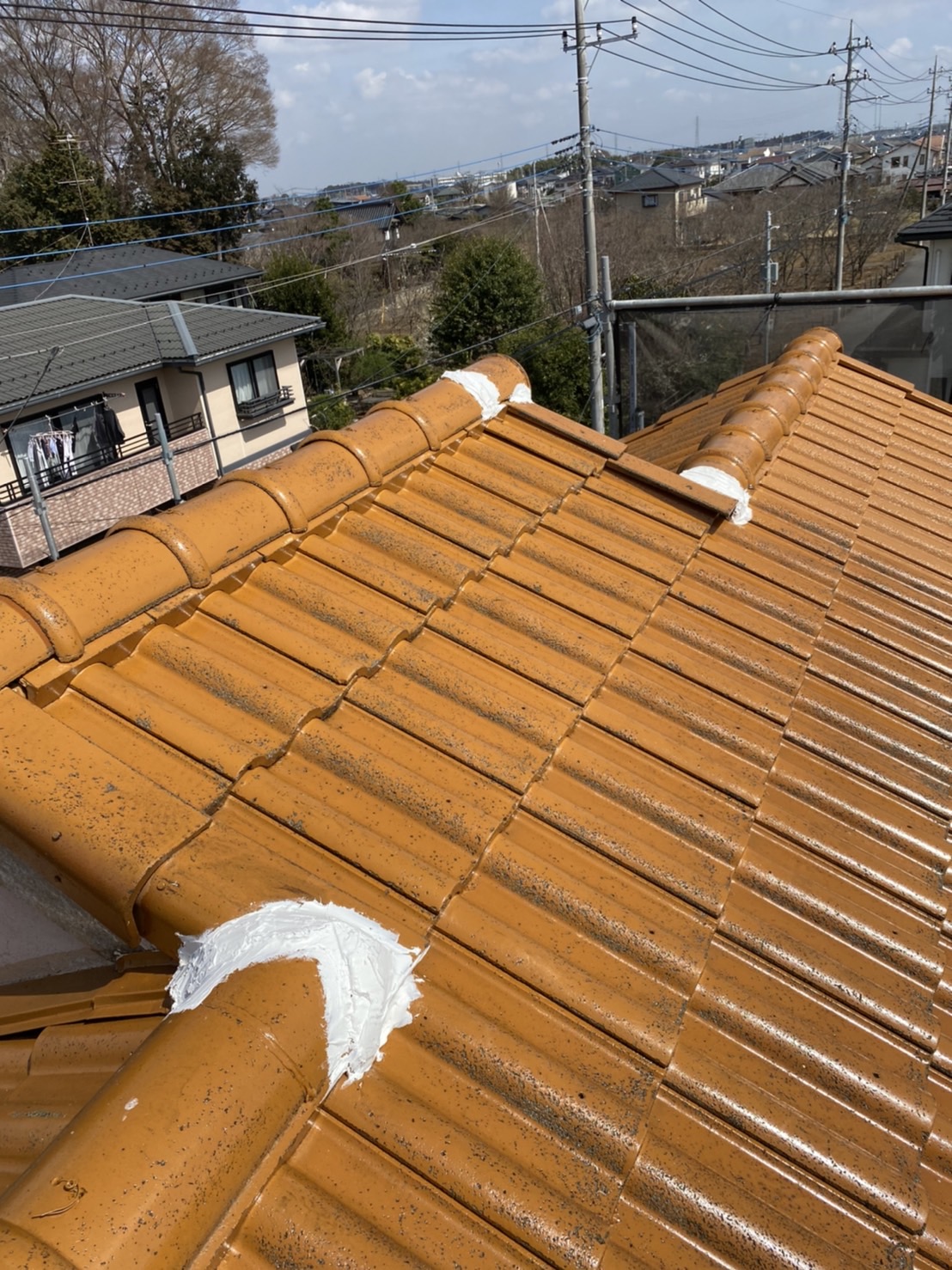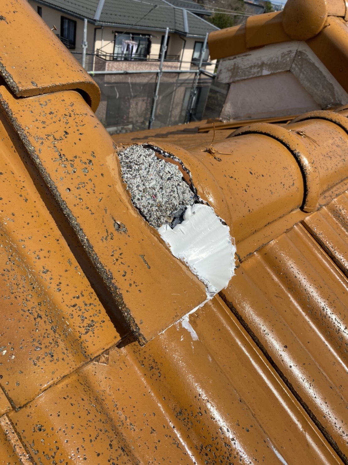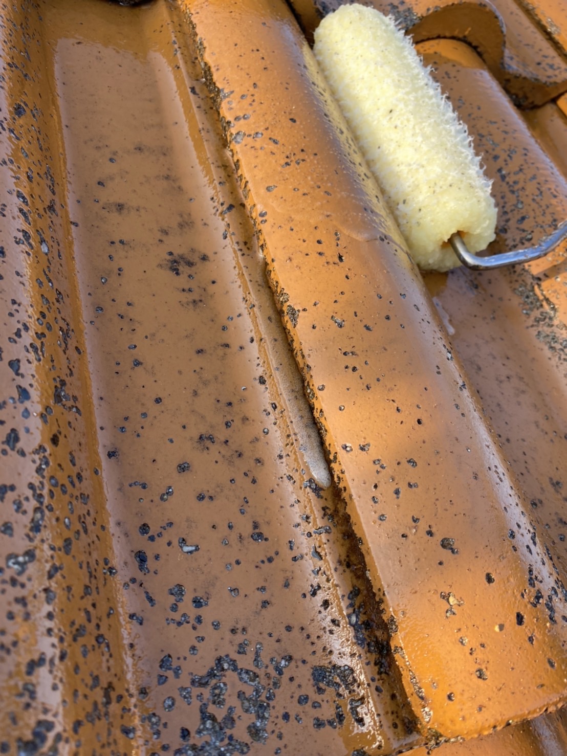 瓦と瓦の細かい部分まで塗り残しが無いよう丁寧に作業を進めていきます。