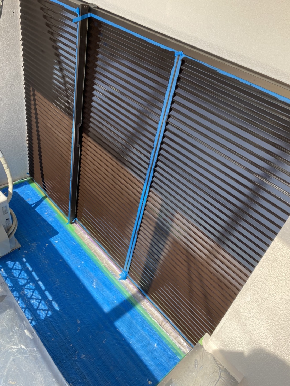 雨戸塗装は刷毛目がでないように基本的には吹付塗装で施工します。塩害等で錆がある時はケレンをし、錆止めを入れ、その上から塗装をします。周りに塗料が飛散しないよう、養生をしっかりします。