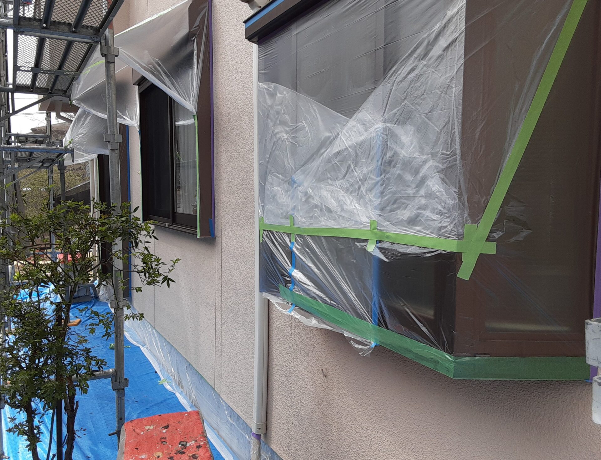 サッシやご自宅周りを汚さないよう、養生していきます。